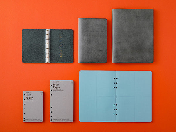 Japan Blue Project is the first US Exclusive project by PLOTTER. It includes a line-up of PLOTTER 6-Ring Leather Binders with US Exclusive Shiranami Leather in A5, Bible, and Mini Size, as well as its complementary special Refill Memo Pad made with high-quality blue color paper in “Quadrant Graph”.